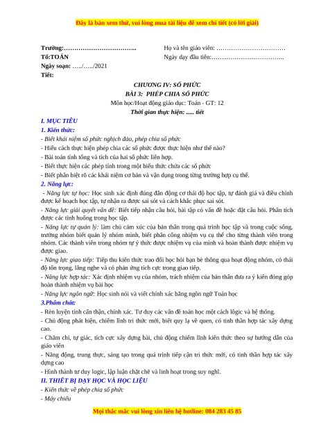 Giáo án Phép chia số phức Toán 12 Giải tích