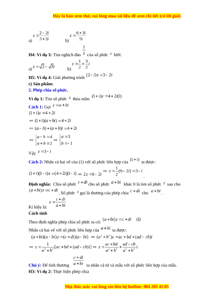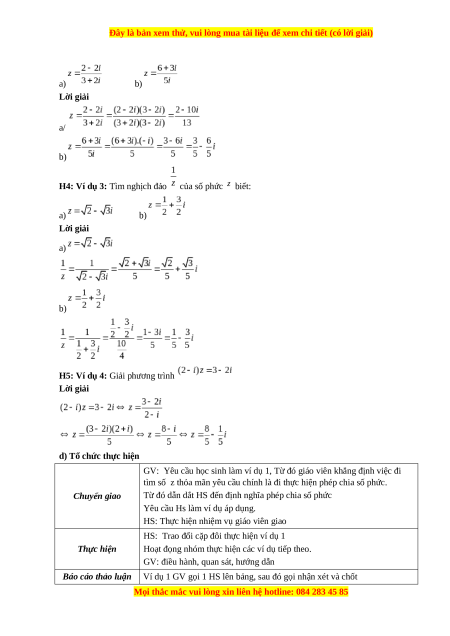 H5: Ví dụ 4: Giải phương trình c) Sản phẩm: 2. Phép chia số phức.
