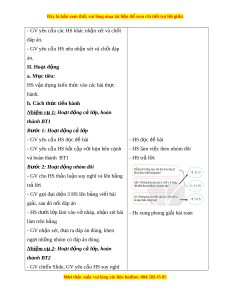 - GV yêu cầu HS nêu nh n xét ậ và ch t ố đáp án. II. Hoạt đ ng ộ a. Mục tiêu: HS v n ậ d ng ki ụ n t ế h c vào các ứ bài th c ự hành. b. Cách th c ứ ti n hàn ế h Nhi m ệ v 1: ụ Hoạt đ ng ộ c l ả p, hoàn ớ thành BT1