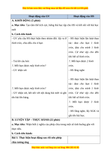 2. Học sinh: SGK, vở ô li, nháp, bộ đồ dùng học Toán ...