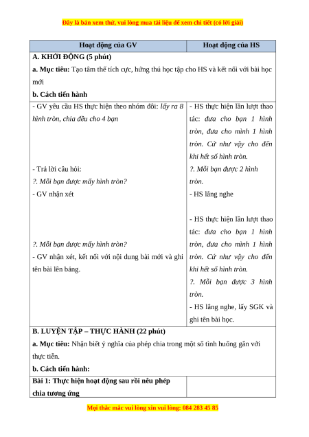 Giáo án Phép chia Toán lớp 2 Cánh diều
