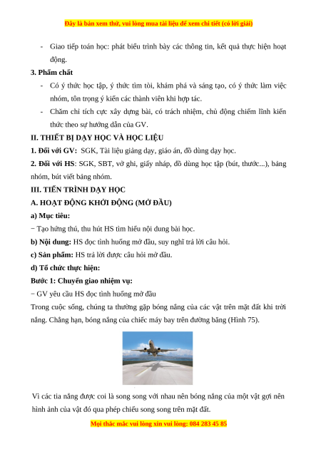 - Sử dụng được kiến thức về phép chiếu song song để mô tả hình ảnh trong thực tiễn. 2. Năng lực