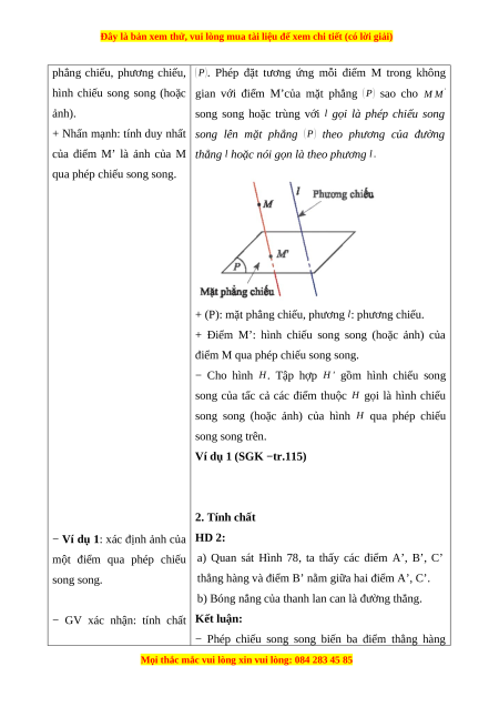 là phép chiếu song song, hình biểu diễn của phép chiếu song song và tính chất.”