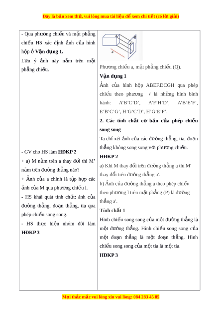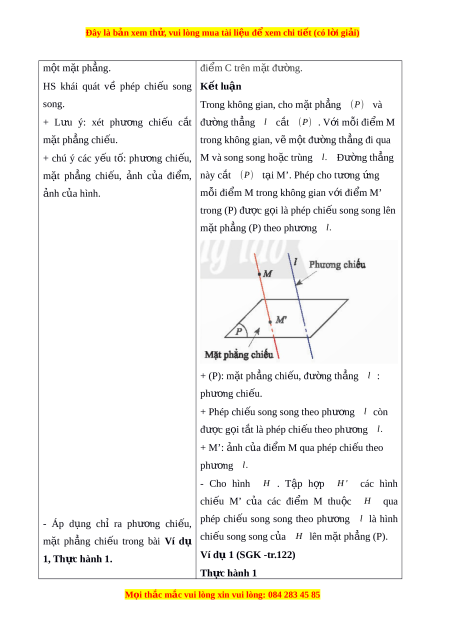 Đây là bản xem th , vu ử i lòng mua tài li u ệ đ xe ể m chi ti t ế (có l i ờ gi i ả ) Ngày so n ạ : .../.../... Ngày d y ạ : .../.../... BÀI 5: PHÉP CHI U Ế SONG SONG (3 TI T) Ế I. MỤC TIÊU: 1. Ki n ế th c