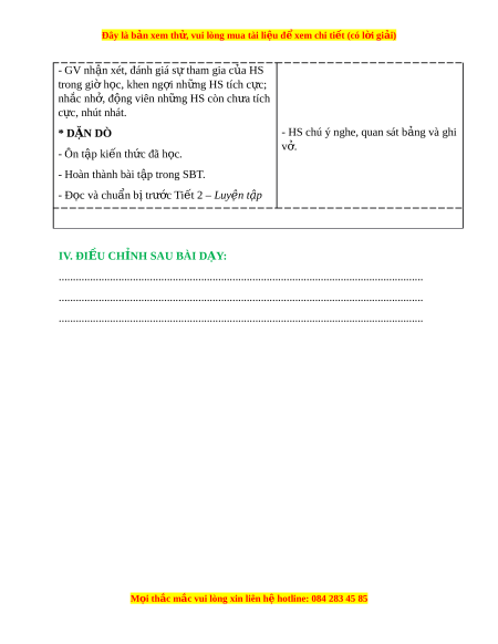 IV. ĐI U CH NH SAU BÀI D Y:Ề Ỉ Ạ