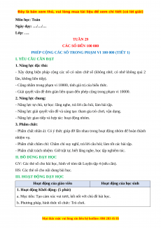 Giáo án Phép cộng các số trong phạm vi 100 000 Toán 3 Chân trời sáng tạo