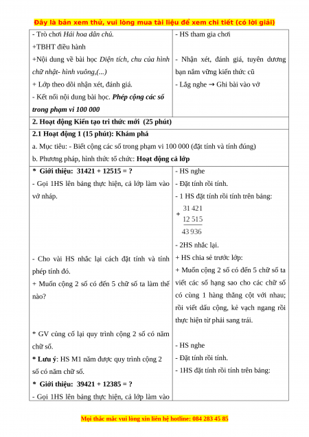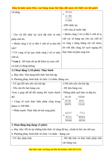 + Củng cố cách thực hiện phép cộng trong phạm vi 100 000.