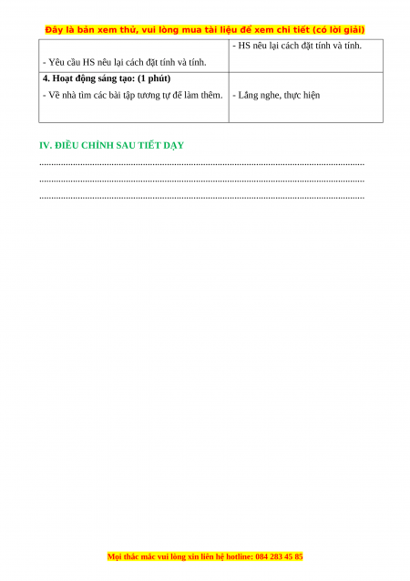 IV. ĐIỀU CHỈNH SAU TIẾT DẠY