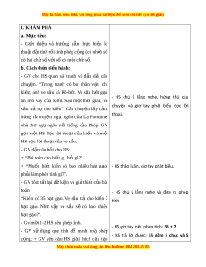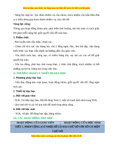 nêu bài toán và cách gi i ả , HS phát tri n năng l ể c gi ự i ả quy t ế v n đ ấ t ề oán h c. ọ 3. Phẩm ch t ấ - Rèn luy n t ệ ính c n t ầ h n, chí ậ nh xác. - Chăm chỉ tích c c ự xây d ng ự bài, chú ý l ng ắ nghe, đ c, ọ làm bài t p, ậ v n ậ d ng ụ ki n t ế h c ứ vào th c t ự i n d ễ ư i ớ s h ự ư ng d ớ n c ẫ a ủ giáo viên. - Yêu thích môn h c, ọ sáng t o, ạ có ni m ề h ng