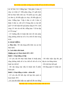 ự riêng: Thông qua ho t ạ đ ngkhám ộ phá, phát hi n ệ tình hu ng, ố nêu bài toán và cách gi i ả , HS phát tri n năng l ể c gi ự ao ti p, năng ế l c gi ự i ả quy t ế v n đ ấ ề 3. Phẩm ch t ấ + Yêu thích h c m ọ ôn Toán, có h ng ứ thú v i ớ các con số + Phát tri n t ể duy t ư oán cho h c s ọ inh II. THIẾT B D Ị ẠY H C Ọ VÀ H C Ọ LI U Ệ 1. Đ i ố v i ớ giáo viên: M i