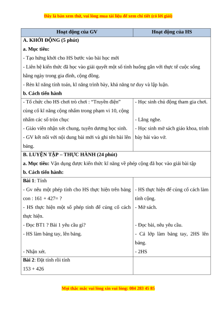 - Rèn kĩ năng tính toán, kĩ năng trình bày, khả năng tư duy và lập luận. b. Cách tiến hành