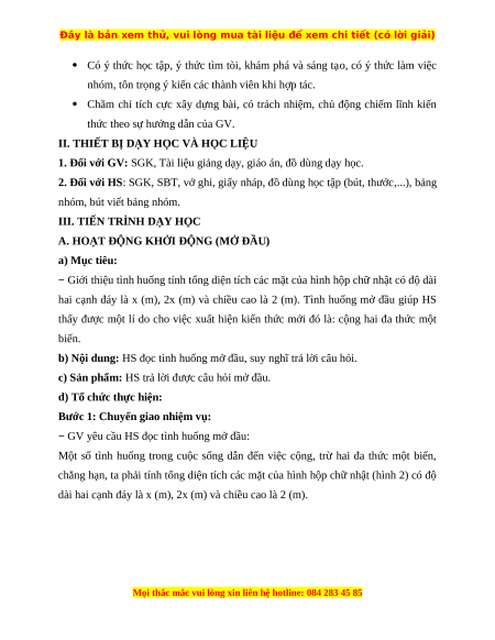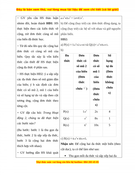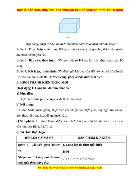 − Thực hiện được phép cộng các đa thức một biến. b) Nội dung: