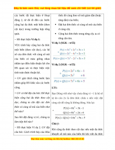 Giáo án Phép cộng, phép trừ đa thức một biến Toán 7 Cánh diều