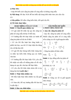 ộ các tử và giữ nguyên = −4 + −6 = mẫu chung. 9 9 −4+(−6) = −10 9 9 Hoạt đ ng 2: ộ Tính ch t ấ c a phép c ủ ng phân s ộ ố a) M c t ụ iêu: - HS n m ắ đư c ợ các tính ch t ấ c a ủ phép c ng ộ phân s : ố tính ch t ấ giao hoán, tính chất k t ế h p ợ - V n d ậ ng ụ các tính ch t ấ c a phép c ủ ng ộ đ t ể ính nhanh b) N i