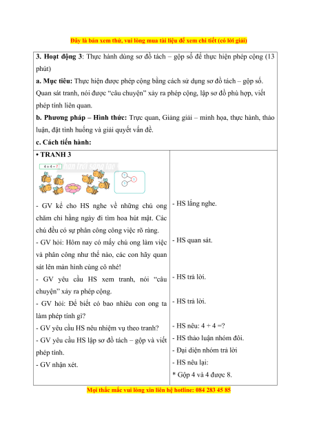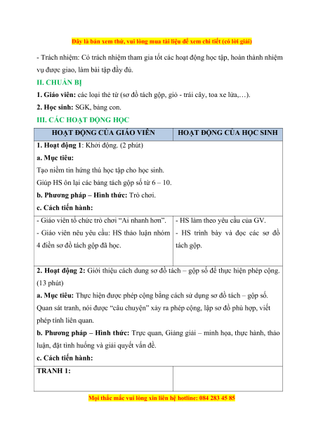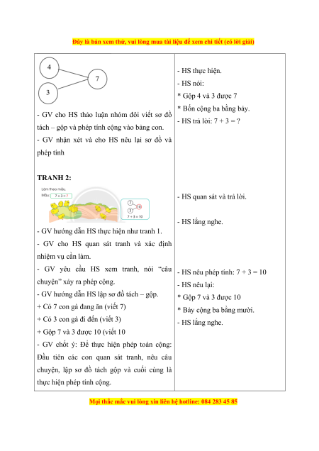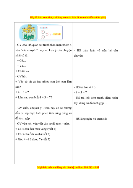 Đây là bản xem thử, vui lòng mua tài liệu để xem chi tiết (có lời giải) - HS thực hiện. - HS nói: * Gộp 4 và 3 được 7