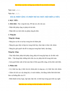 - Nhận biết các tính chất của phép cộng đa thức. 2. Năng lực Năng lực chung: