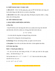 2. Đối với HS: SGK, SBT, vở ghi, giấy nháp, đồ dùng học tập (bút, thước...), bảng
