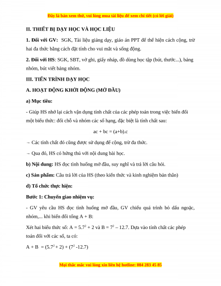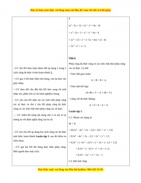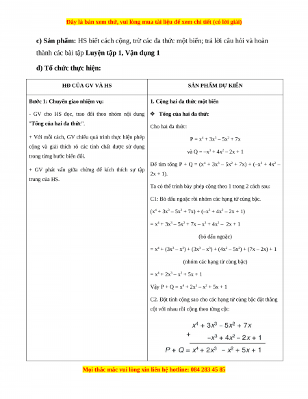 - Nâng cao kĩ năng cộng đa thức. b) Nội dung:
