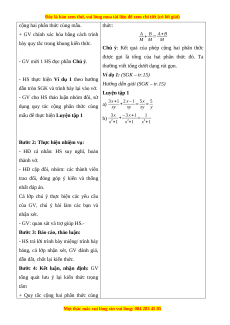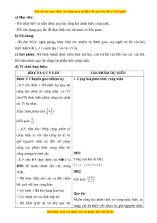- Nhận biết được quy tắc dấu ngoặc đối với các phép tính cộng, từ nhiều phân thức. 2. Năng lực
