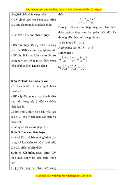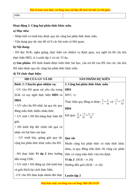 CỘNG HAI PHÂN THỨC KHÁC MẪU