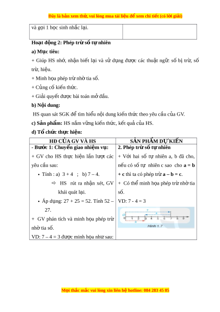 Ho t đ ng 2: Phép tr s t nhiênạ ộ ừ ố ự