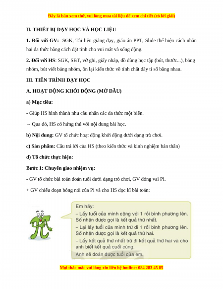 - Vận dụng được các tính chất của phép cộng và nhân đa thức trong tính toán.