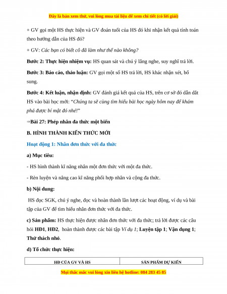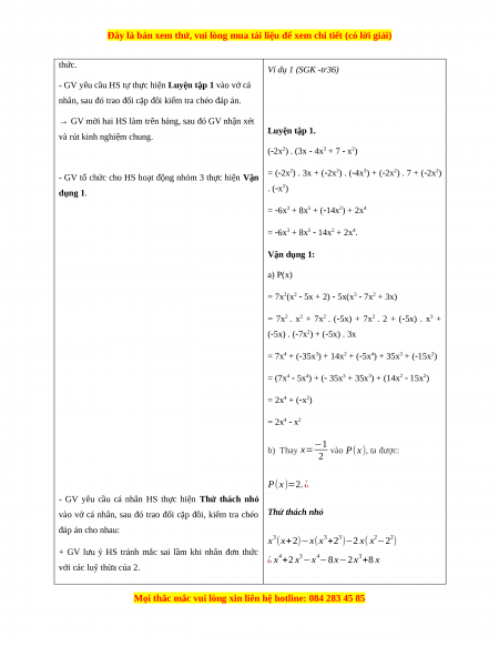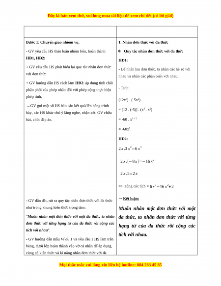 - Rèn luyện và nâng cao kĩ năng phối hợp nhân và cộng đa thức. b) Nội dung: