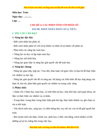 BÀI 80: PHÉP NHÂN PHÂN SỐ (2 TIẾT)