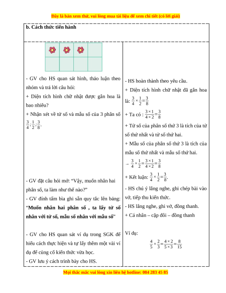 Giáo án Phép nhân phân số Toán lớp 4 Cánh diều