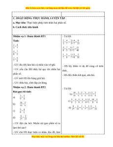 “Muốn nhân hai phân số , ta lấy tử số - HS lắng nghe, ghi vở, đồng thanh.
