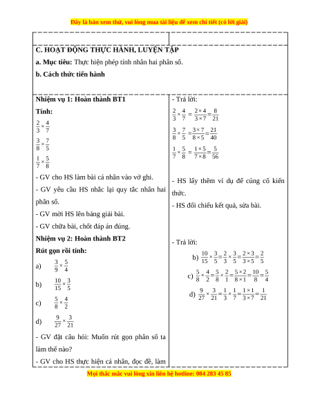 a. Mục tiêu: Biết cách thực hiện phép nhân hai phân số