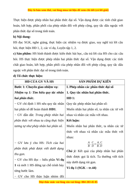 Thực hiện được phép nhân hai phân thức đại số. Vận dụng được các tính chất giao