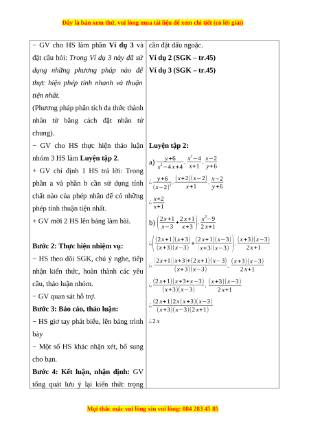 - Giải quyết vấn đề toán học: Thông qua các thao tác nhân, chia hai phân thức,