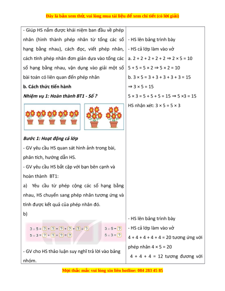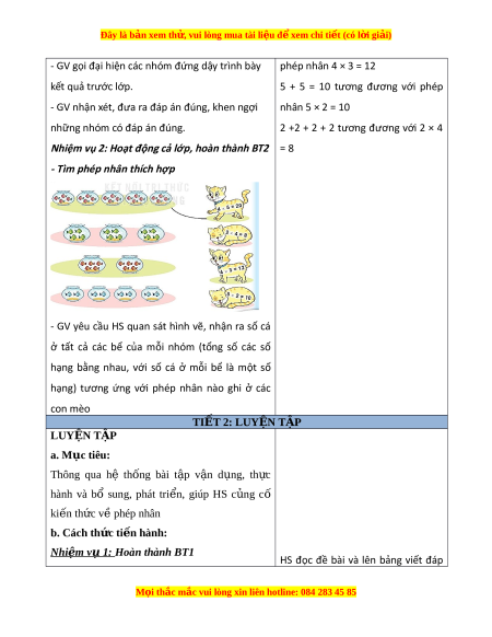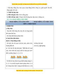 ớ giáo viên: SGK, b ng ả phụ b. Đ i ố v i ớ h c s ọ inh: V ghi ở , b đ ộ ồ dùng h c t ọ p ậ toán 2, b ng con ả III. CÁC HO T Ạ Đ N Ộ G D Y Ậ H C Ọ HOẠT Đ N Ộ G C A Ủ GIÁO VIÊN HOẠT Đ N Ộ G C A Ủ H C Ọ SINH TI T Ế 1: PHÉP NHÂN I. KHÁM PHÁ a. Mục tiêu: