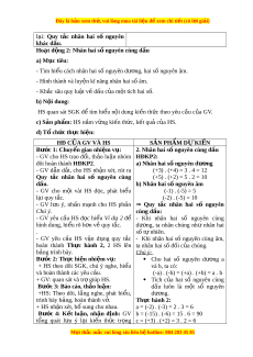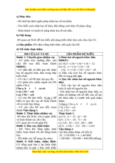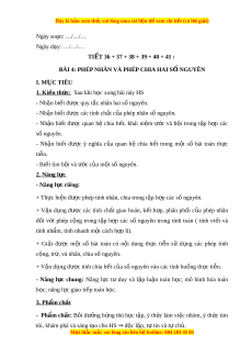 ợ các số nguyên trong tính toán ( tính vi t ế và tính nh m ẩ , tính nhanh m t ộ cách h p l ợ í). + Gi i ả đư c ợ m t ộ số bài toán có n i ộ dung th c ự ti n ễ sử d ng ụ các phép tính c ng, t ộ r , và nhân, chi ừ a số nguyên. + V n ậ d ng đ ụ ư c ợ tính chia h t ế c a s ủ nguyên ố vào các tình hu ng t ố h c t ự i n. ễ - Năng l c ự chung: Năng l c ự tư duy và l p ậ lu n ậ toán h c; ọ mô hình hóa toán h c; ọ năng l c ự giao ti p ế toán h c. ọ 3. Ph m ẩ chất - Phẩm ch t ấ : Bồi dư ng h ỡ ng t ứ hú h c ọ t p, ý t ậ h c l ứ àm vi c nhóm ệ , ý th c t ứ ìm