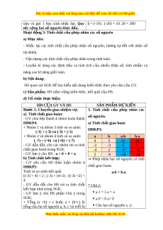ứ : Sau khi h c ọ xong bài này HS - Nh n ậ bi t ế đư c quy t ợ ắc nhân hai số nguyên. - Nh n ậ bi t ế đư c ợ các tính ch t ấ c a phép nhân ủ s nguyên. ố - Nh n ậ bi t ế đư c ợ quan hệ chia h t ế , khái ni m ệ ư c ớ và b i ộ trong t p ậ h p ợ các số nguyên. - Nh n ậ bi t ế đư c ợ ý nghĩa c a ủ quan hệ chia h t ế trong m t ộ số bài toán th c ự ti n. ễ - Bi t ế tìm b i ộ và ư c c ớ a ủ m t ộ s nguyên. ố 2. Năng l c ự - Năng l c ri ự êng: + Th c hi ự n đ ệ ư c phép ợ tính nhân, chia trong t p ậ h p các s ợ ố nguyên. + V n ậ d ng ụ đư c ợ các tính ch t ấ giao hoán, k t ế h p, ợ phân ph i ố c a ủ phép nhân đối v i ớ phép c ng ộ trong t p ậ h p