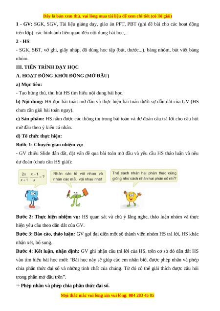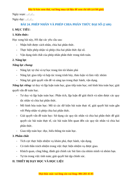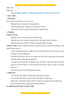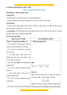 BÀI 24. PHÉP NHÂN VÀ PHÉP CHIA PHÂN THỨC ĐẠI SỐ (2 tiết) I. MỤC TIÊU: