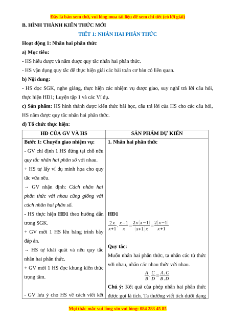 TIẾT 1: NHÂN HAI PHÂN THỨC