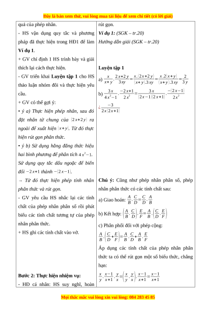 - Vận dụng tính chất của phép nhân phân thức trong tính toán. 2. Năng lực