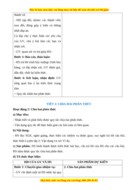 TIẾT 2: CHIA HAI PHÂN THỨC
