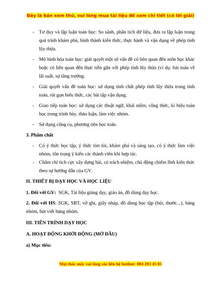 thực tiễn gắn với phép tính lũy thừa (ví dụ: bài toán về lãi suất, sự tăng trưởng,...). 2. Năng lực