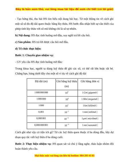 một số số đo độ dài quen thuộc bằng lũy thừa, HS bước đầu nhận biết sự cần thiết của