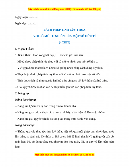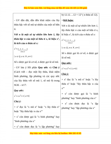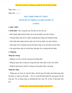 Giáo án Phép tính lũy thừa với số mũ tự nhiên của một số hữu tỉ Toán 7 Cánh diều