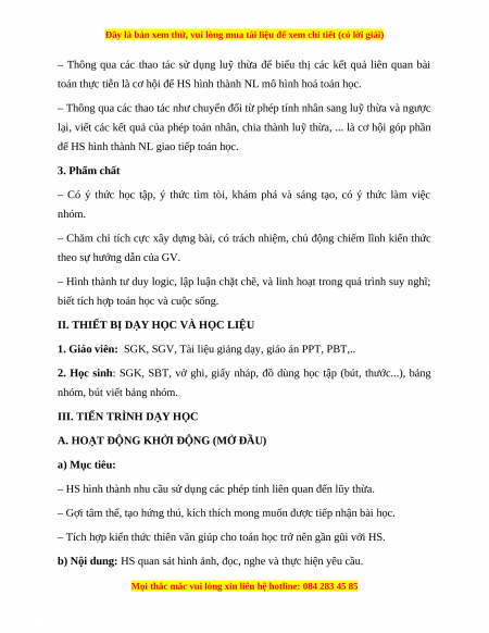 lũy thừa, so sánh các lũy thừa, ... HS có cơ hội để hình thành NL giải quyết vấn đề