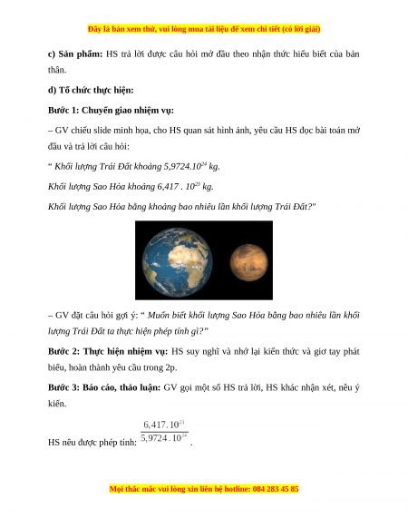 ‒ GV đặt câu hỏi gợi ý: “ Muốn biết khối lượng Sao Hỏa bằng bao nhiêu lần khối