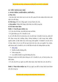 d) Tổ chức thực hi n: ệ Bư c ớ 1: Chuy n gi ể ao nhi m ệ v : ụ - GV yêu cầu HS đ c, t ọ ìm hi u bài ể toán mở đ u. ầ - GV gi i ớ thi u qua v ệ vi ề khu n E ẩ .coli: E.coli vi t ế đ y