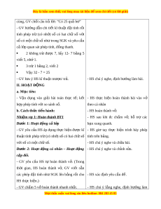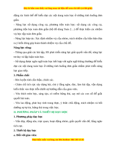 ứ thú, say mê các con số để gi i ả quy t ế bài toán. - Yêu lao đ ng, ộ phát huy tính trung th c, ự ý th c ứ chủ đ ng, ộ trách nhi m ệ và b i ồ dư ng ỡ s t ự t ự in, h ng t ứ hú trong vi c h ệ c. ọ II. PHƯ N Ơ G PHÁP VÀ THI T Ế B D Ị Y Ạ H C Ọ 1. Phư ng ơ pháp d y h ạ c ọ - Vấn đáp, đ ng ộ não, tr c ự quan, ho t ạ đ ng ộ nhóm, gi i ả quy t ế v n ấ đ , ề l ng ắ nghe tích c c. ự 2. Thi t ế b d ị y h ạ c ọ a. Đ i ố v i ớ giáo viên: M i