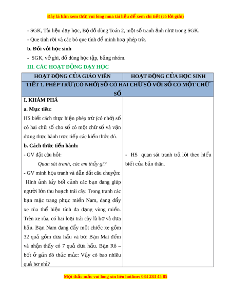Đây là bản xem th , vu ử i lòng mua tài li u ệ đ xe ể m chi ti t (c ế ó l i ờ gi i ả ) - SGK, Tài li u d ệ y h ạ c, ọ B đ ộ dùng ồ Toán 2, m t ộ số tranh nh ả nh t ư rong SGK. - Que tính r i