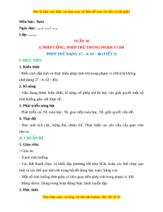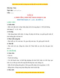 Ngày dạy: ....../ ....../ ...... L p: ớ ......... TUẦN 30 4. PHÉP C N Ộ G, PHÉP TR Ừ TRONG PH M Ạ VI 100 PHÉP TR D