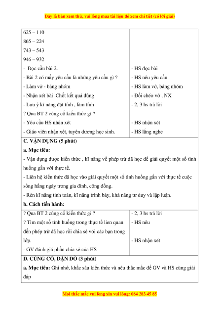 - Vận dụng được kiến thức , kĩ năng về phép trừ đã học để giải quyết một số tình